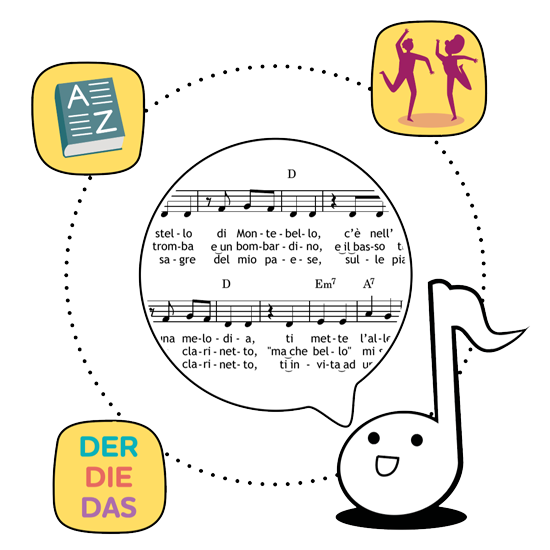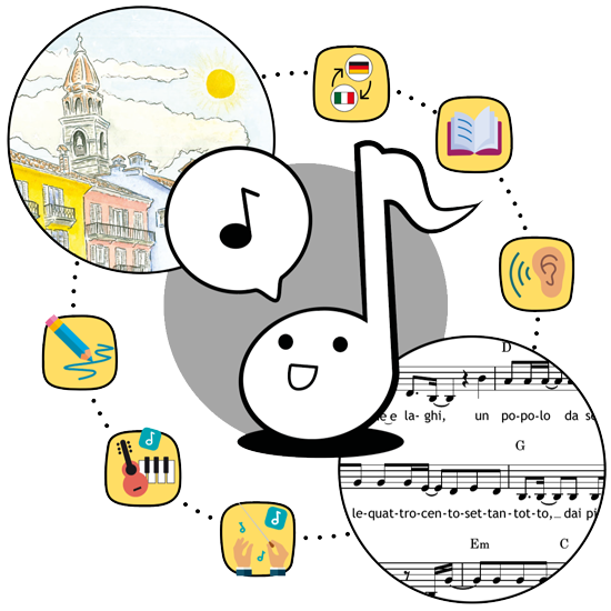 - CLIL: Spannende Felder und Berührungspunkte zwischen Sprachen und Musik identifizieren und verbinden; und in die Kultur der italienischen Schweiz einbetten.