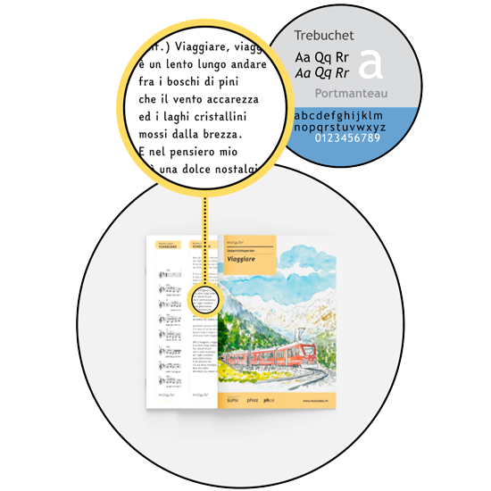 Alle Ausgangspunkte sind in der Übersicht des Liedes zusammengefasst: 'Übersicht Unterrichtsperlen': Thema, Ziele, Kompetenzstufen, Links zu Handbüchern oder LP21-Lehrplan (Symbole), Dauer, Kompetenzsymbole. Dann gibt es die Aktivitäten: die einzelnen Perlen und Arbeitsblätter, und schliesslich die Liedtexte und die Notenblätter. Letztere sind auf der Website auch separat im .pdf-Format zu finden. Für jedes Lied gibt es eine Originalversion und eine Instrumentalversion (manchmal wird die Tonart geändert, um sie an die Stimmlage der Kinder anzupassen).